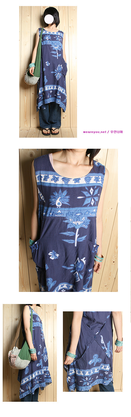 큼직한 프린트가 근사한 면원피스입니다.