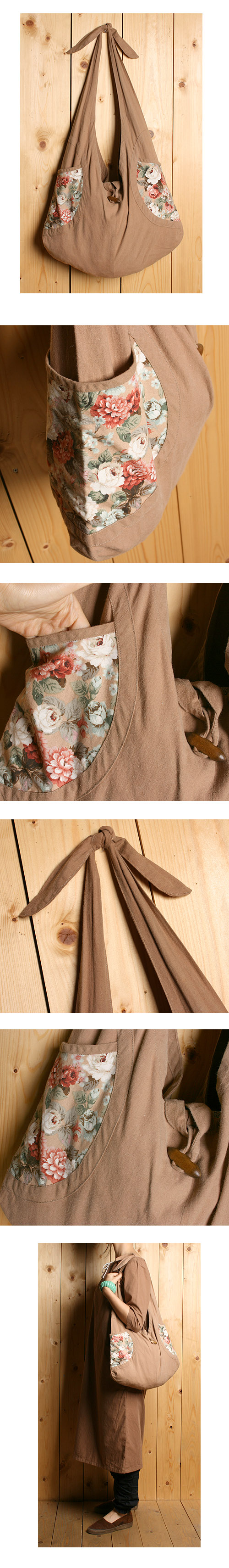 어깨끈은 직접 묶어서 길이 조절이 가능합니다.