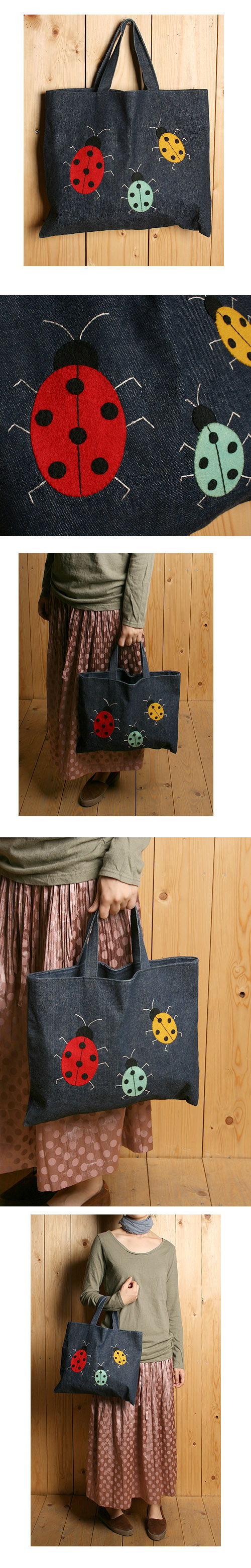 데님에 펠트인지 부직포인지 확실하지 않은 풍뎅이 장식.