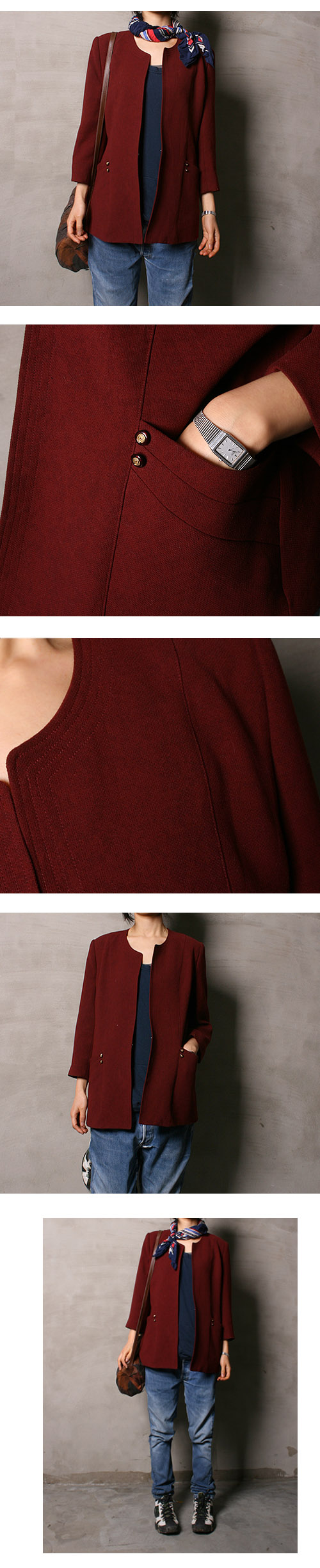 앞부분 작은 후크 하나 있어 채워 입을수 있습니다.