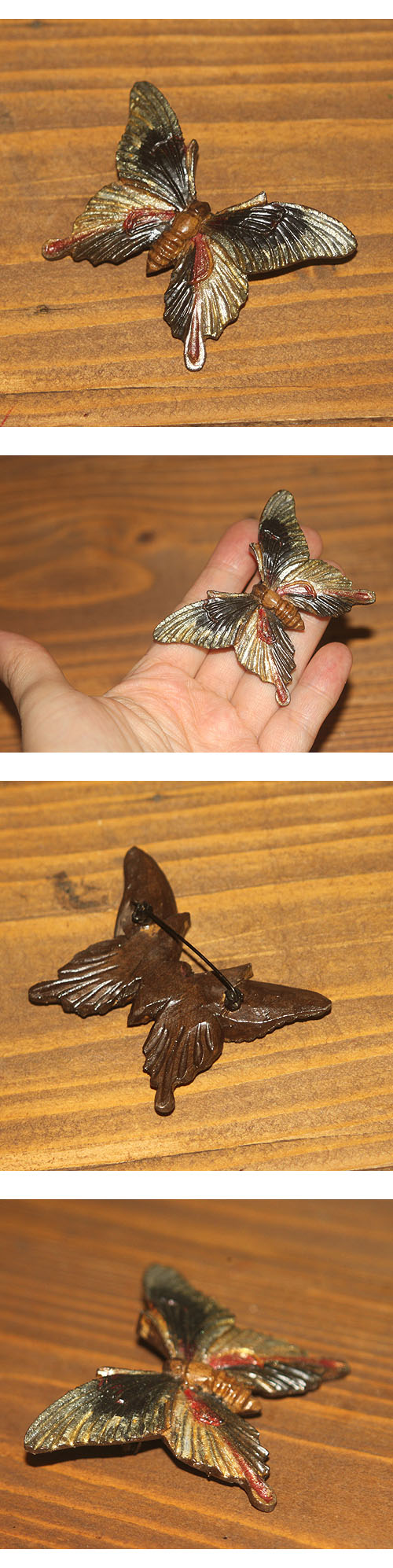 일본 나무 손조각 브로치
